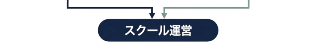 すべてを一人で抱え込まず、役割を分けることで、無理のない形でスクール運営が成り立つ仕組みです。